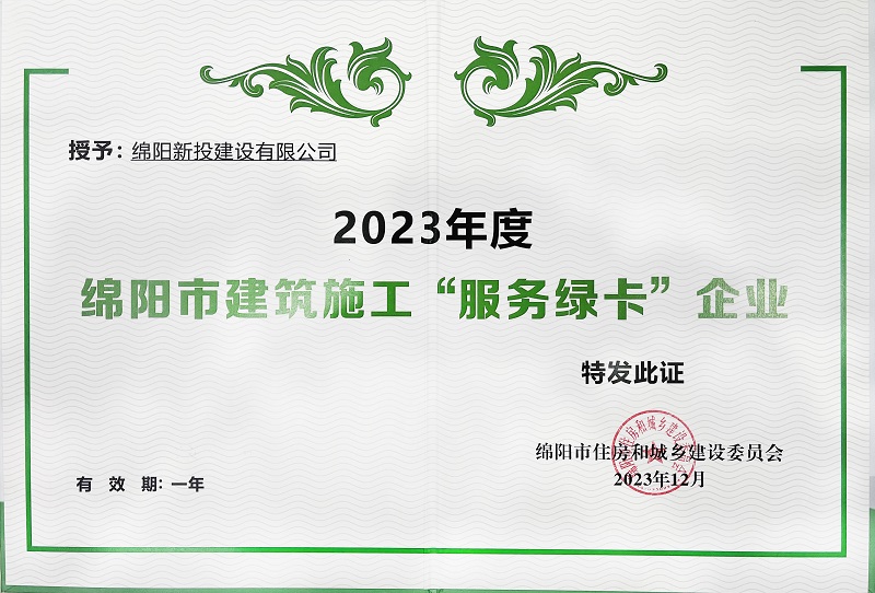 2023年度綿陽(yáng)市建筑施工“服務(wù)綠卡”企業(yè)
